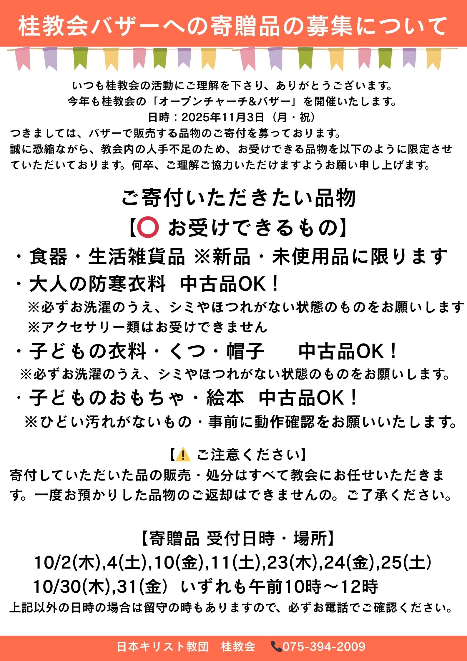 2025年11月3日(月)桂教会オープンチャーチ&バザーを開催します。